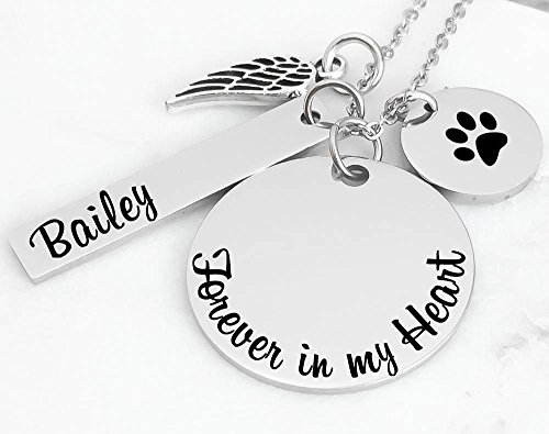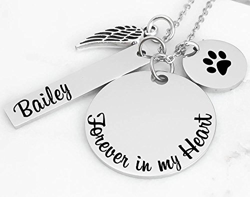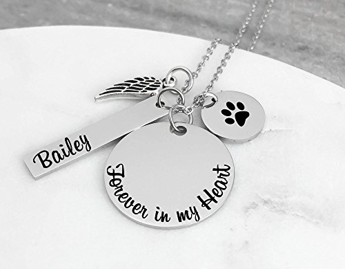 -. Brand : Remember Me Jewelry -. Color : Silver -. Department : womens -. IsAdultProduct : 0 -. ProductGroup : Guild Product -. ProductTypeName : GUILD_JEWELRY -. Title : Pet Loss Memorial Necklace - Forever in my Heart - Angel Wing - Name Bar - Paw P.R.Int