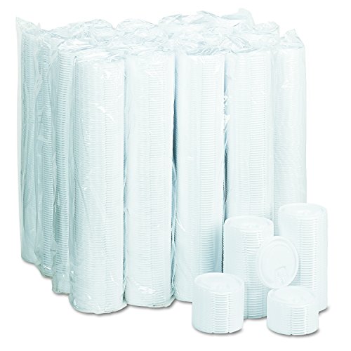 This SOLO DLX12R-00007 white polystyrene lid measures 3.5 x 0.3 inches (Dia x H) and is suitable for use with SOLO Trophy Hot Cups from 12 to 24 oz. (Dia is diameter, the horizontal distance from one side to the other; H is height, the vertical distance from bottom to top.) The lid is made of polystyrene for strength and flexibility and has a scored tab that can be pushed back and locked in place to allow access to the beverage. This white polystyrene lid is suitable for use with SOLO Trophy Hot Cups in a variety of food service settings.