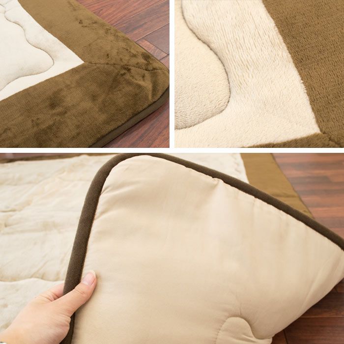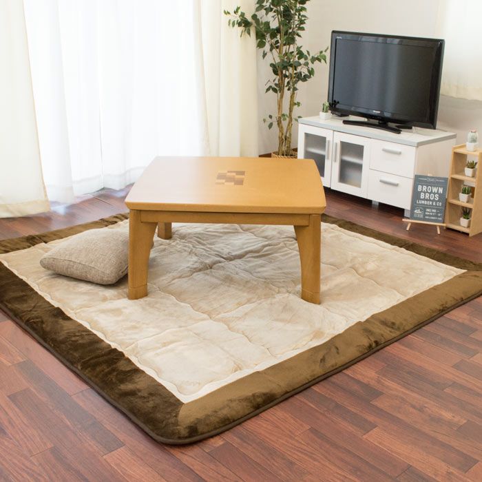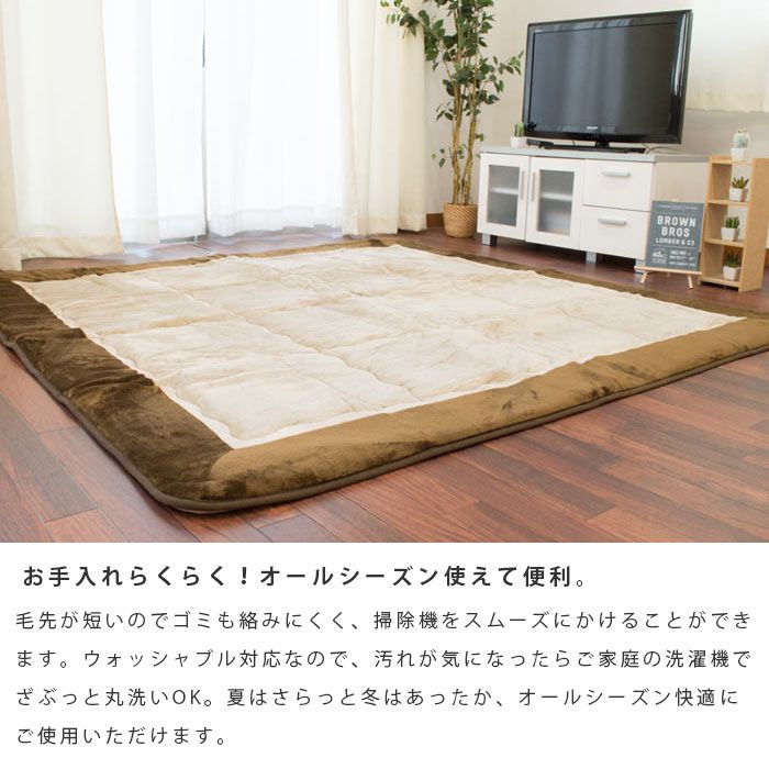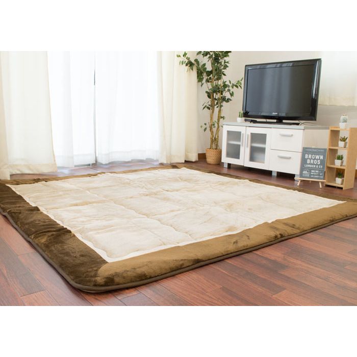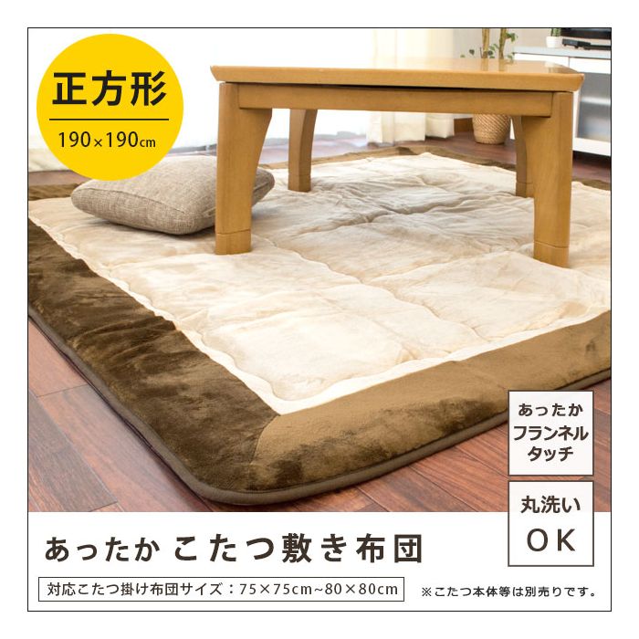 Rakuten 【무료 우송】난로깔개 이불 퀼트 러그 약190×190cm flannel 원단 센터 러그로서도 (난로 각로 각로 이불 무지 베이지 브라운 2다다미 2첩 라쿠텐 통판 러그 정방형 핫