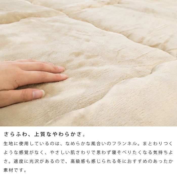 한층 후와(불화),상질의 부드러움.원단으로 사용 하고 있는 것은,매끄러운 촉감의 flannel.감기는 듯한 감각이 없고, 부드러운 기질촉감에 무심코 엎드려 누워 싶어지는 기분 좋음.적당하게 광택이 어느(있는) 때문에,고급감도 느껴지는 겨울에 추천의 따스한 소재입니다.