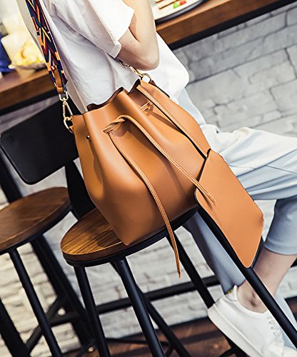Jiaruo Colorful Strap Large Capacity Leather Shoulder Handbags Bucket bags