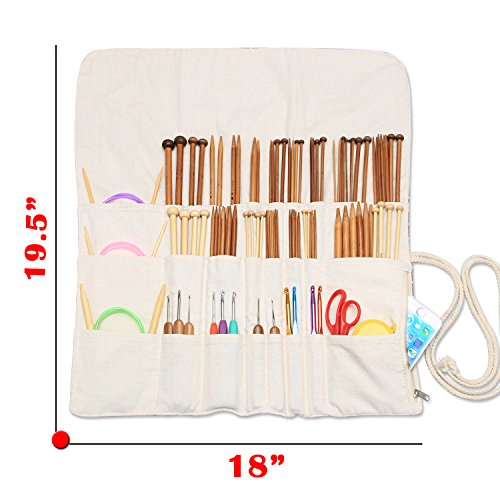 - UNIQUE DESIGN: 4 reinforced grommets of knitting project bag are designed for different yarns to be pulled through. .The zipper pocket of this wrap is for your bits and pieces and the top flap is ideal to prevent knitting needles falling down and offer excellent protection for tip of needles.