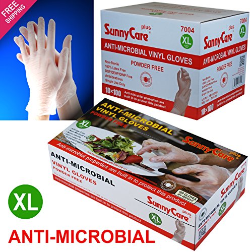 (SunnyCare)/Accessories/Gloves/DIRECT FROM USA/Sunnycare #7004 1000/1cases ANTI-MICROBIAL Vinyl Disposable Gloves Powder Free (Latex Nitrile F...