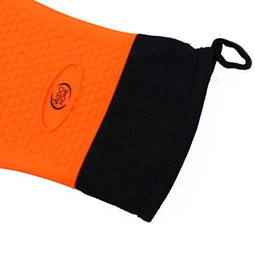 BBQ Grilling Gloves, Heat Resistant Kitchen Silicone Oven Mitts Extra Long (Orange)
