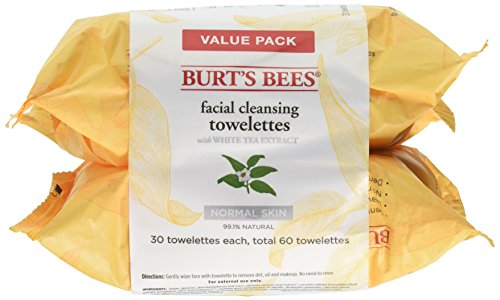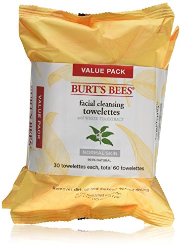 ReleaseDate : 2017-08-19 Studio : Burt's Bees, Inc. Publisher : Burt's Bees, Inc. Binding : Health and Beauty Product Description Burt's Bees Facial Cleansing Towelettes, White Tea Extract, cleanse your face in one easy step without ever having to rinse. They are specially formulated for all skin types. They gently remove dirt, oil, and makeup. Infused with white tea extract, calming cucumber and aloe, they leave your skin feeling smooth and naturally clean. They are 99.1% natural, dermatologist and ophthalmologist-tested and contain no parabens, phthalates or petrolatum. Since no rinsing is necessary, you can use these disposable wipes anytime, anywhere. 0