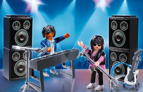-. Feature : Rock out even when you're on the road with the Carrying Case Band / Packed with musicians and their instruments, making it easy for kids to perform an impromptu jam session for their fans / Figures can bend, sit, stand and turn their heads / Encourages children to explore and learn while having fun / Set includes two band members, guitar, keyboard, microphones, speakers and additional accessories