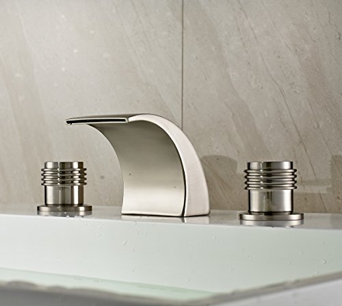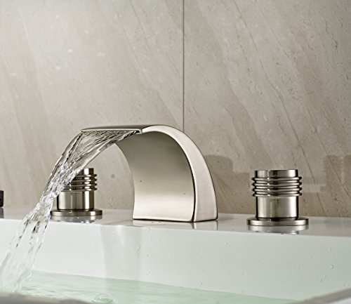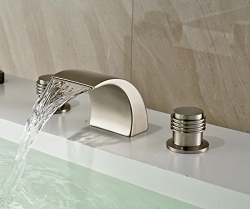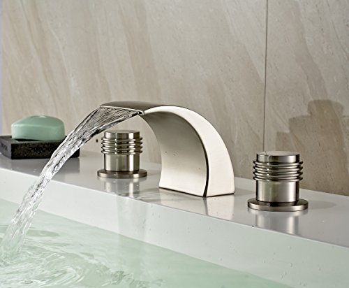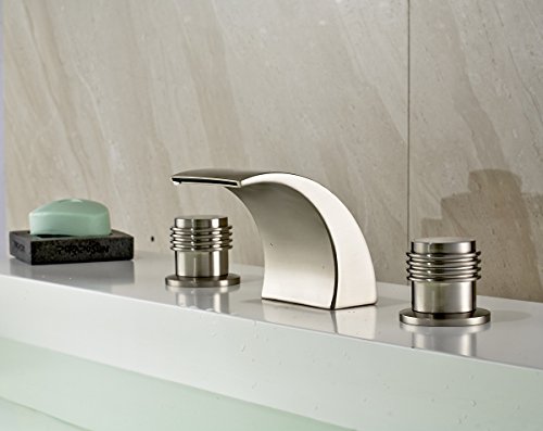 -. Title : Rozin Brushed Nickel Waterfall Spout Double Handles Basin Faucet Bath Sink Mixer Tap