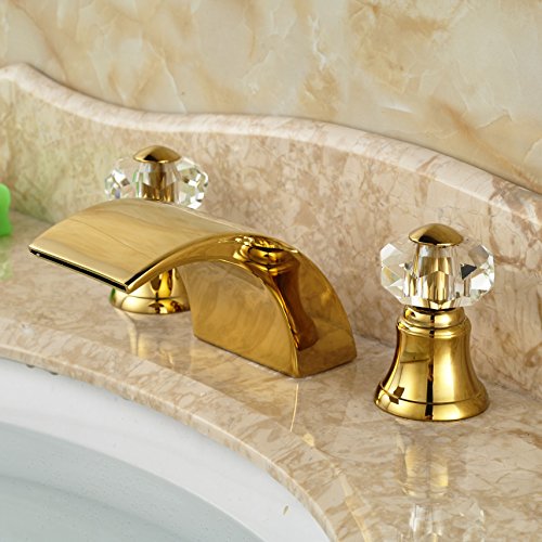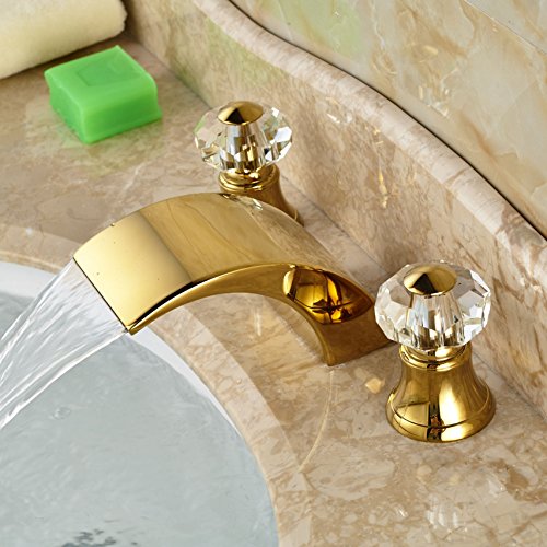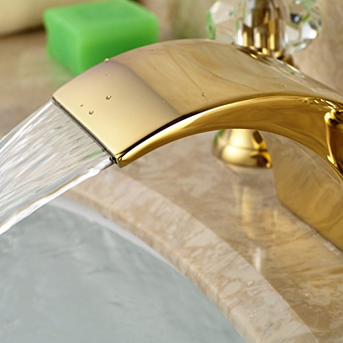 -. Title : Senlesen Widespread Waterfall Bathroom Sink Faucet Lavatory Vessel Sink Faucet Gold Brass