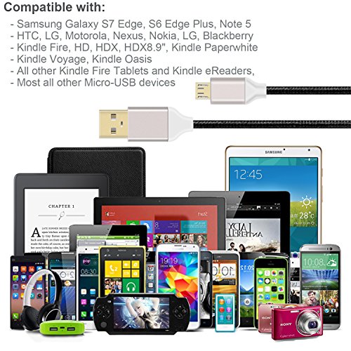 UNIVERSAL COMPATIBILITY: Charge power and Sync data simultaneously. Ideal for charging Most Android smartphone, tablet, MP3 players, camera, e-readers and all other Micro-USB connecting devices including the Samsung Galaxy S6/Edge/Plus, Note 5/4, Note Edge, Galaxy Tab series, HTC One M9/M8/M7, LG G3/G4, Google Nexus, Sony, Nokia, Blackberry