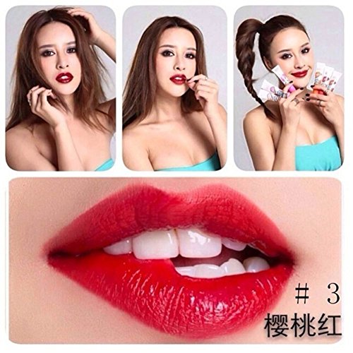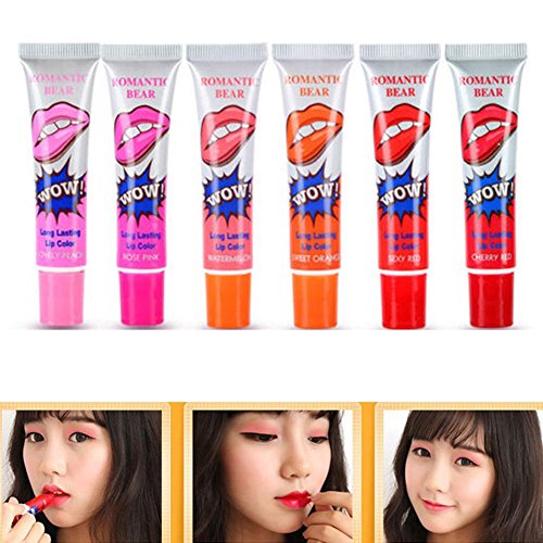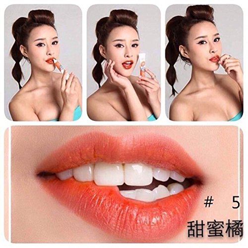 -. Feature : Long Lasting, Colorful, Waterproof, Matte Lip gloss / Capacity: 15ml / Formulation: Lip Cream / Color: Lovely Peach,Rose Pink,Cherry Red,Sexy Red,Sweet Orange,Watermelon Red / Package Included: 1 Waterproof Lip Gloss