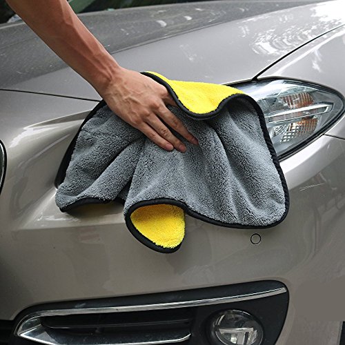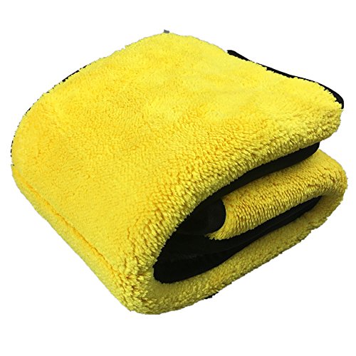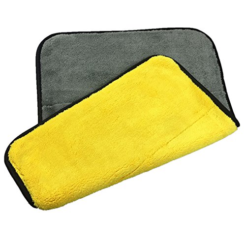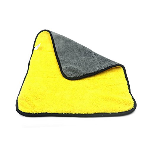 M-S Microfiber Car Cleaning Towels 720gsm Ultra Thick Cars Buffing Cloths Absorbent Car Drying Auto Detailing Towel (13.7"x17.7" ) YELLOW+GREY (1 PCS)