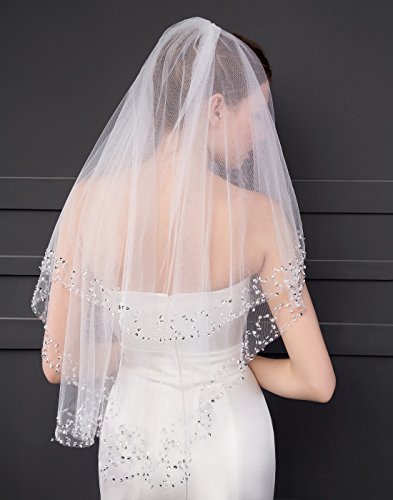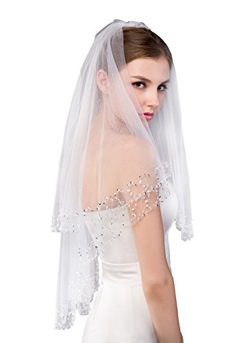 (Wishopping)/Accessories/Scarves/DIRECT FROM USA/Wishopping Women's Short 2 Tier Elbow Length White Wedding Bridal Veil With Comb L25WT