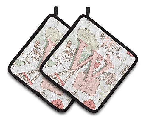 Caroline's Treasures Letter W Love In Paris Pink Pair of Pot Holders CJ2002-WPTHD, 7.5HX7.5W, Multicolor