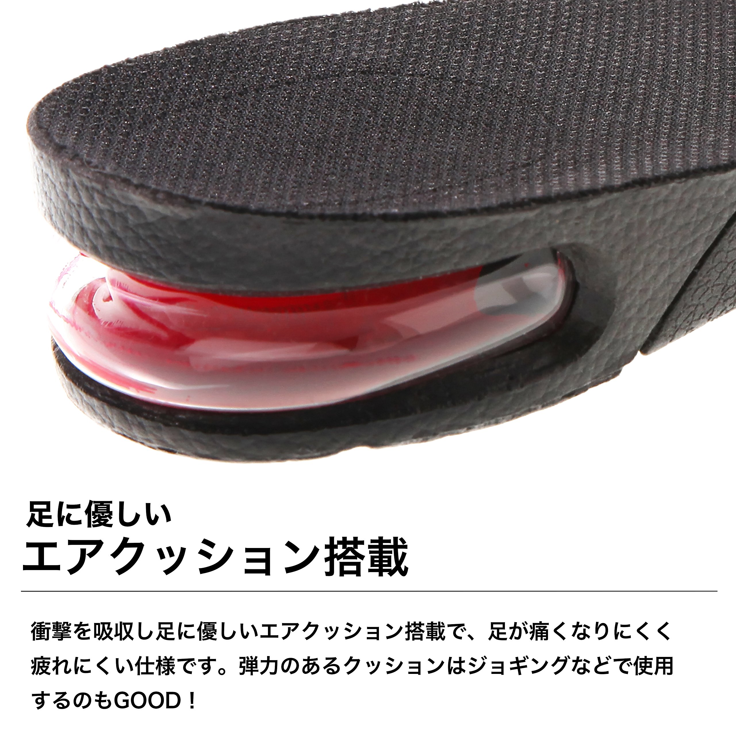 Three heel insoles (2 cm) that can adjust the height to the insole (3 cm) with the main air cushion.