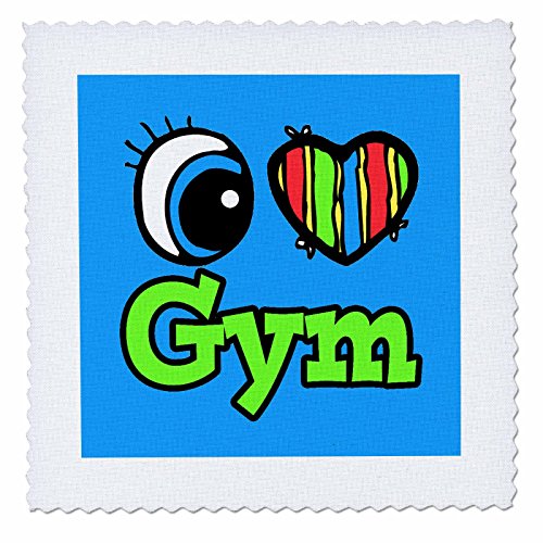 3dRose Bright Eye Heart I Love Gym Quilt Square, 6 x 6"