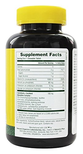 -. Binding : Health and Beauty -. Brand : Nature's Plus -. EAN : 0097467010444 -. Feature : Nature's Plus -. IsAdultProduct : 0 -. Label : Nature's Plus -. LegalDisclaimer : Unless otherwise noted, this item has not been evaluated by the United States Food and Drug Administration. It is not approved to diagnose, treat, cure or prevent disease. -. Manufacturer : Nature's Plus -. Model : 097467010444 -. MPN : 0 -. NumberOfItems : 1 -. PackageQuantity : 1 -. PartNumber : 0 -. ProductGroup : Health and Beauty -. ProductTypeName : HEALTH_PERSONAL_CARE -. Publisher : Nature's Plus -. Size : 90 -. Studio : Nature's Plus -. Title : Nature's Plus Adult's Chewable Vitamin D3 Maui Berry Burst -- 1000 IU - 90 Tablets -. UPC : 097467010444