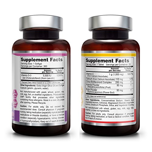 -. Binding : Health and Beauty -. Brand : biophix -. EAN : 0849440005523 -. Feature : In a extra virgin olive oil base. / Active ingredient D-3 Cholecalciferol from Lanolin. / GMP Tested / 5000 IU / Free Vitamin C-1000 with your order -. Label : Biophix -. LegalDisclaimer : This information is intended for your general knowledge only and is not substitute for professional medical advice or treatment for specific medical conditions. This information is not intended to diagnose, treat, cure or prevent any disease. Always seek the advice of your qualified physician or other health care provider with any questions you may have regarding a medical condition. Keep out of reach of children. -. Manufacturer : Biophix -. MPN : 0849440005523 -. NumberOfItems : 1 -. PackageQuantity : 1 -. PartNumber : 0849440005523 -. ProductGroup : Health and Beauty -. ProductTypeName : HEALTH_PERSONAL_CARE -. Publisher : Biophix -. Studio : Biophix -. Title : Vitamin D3 Supplement 5000 IU 360 Softgels - Free Vitamin C-1000 - High-Potency | Non-GMO | Soy-Free | In Extra Virgin Olive Oil | Strong Bones | Immune Health | Support for K-2 -. UPC : 849440005523