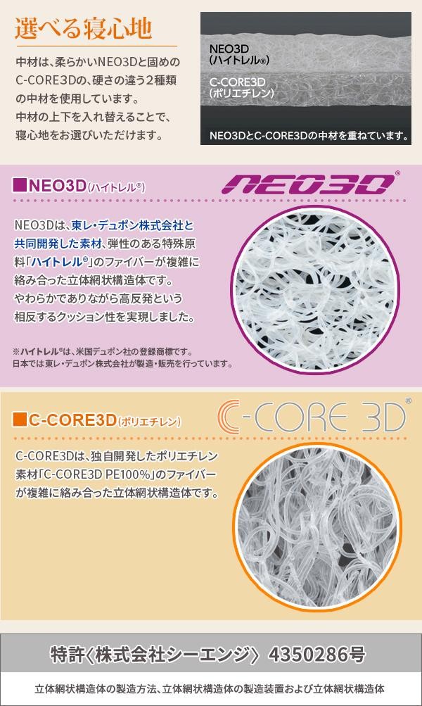 | C-CORE3DとNEO3Dを中材に使用!!ハイブリッド構造のマットレス。 |