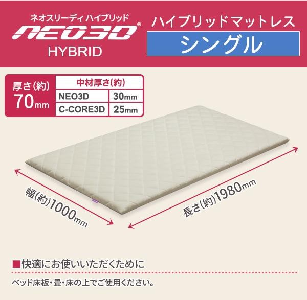 | サイズ | (約)長さ1980×幅1000×厚さ70mm(中材厚さ/NEO3D部分30mm、C-CORE3D部分25mm) 個装サイズ:42×42×102cm |