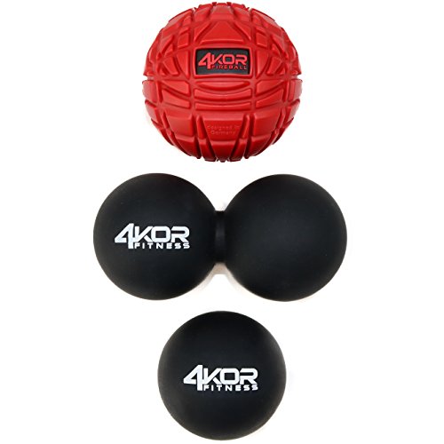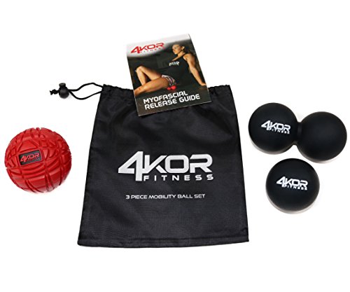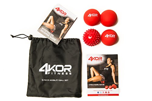 Massage Lacrosse Ball Set by 4KOR Fitness, for Mobility, Myofascial Release, and Trigger Point Therapy, with Instructional Guide and Free Carrying Case (Red)