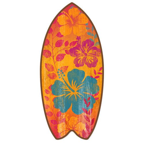 - Take a look at this cute miniature surfboard plaque. It features a bold orange, pink and turquoise color scheme with a weathered finish.