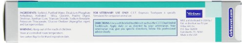 CET Toothpaste is specially formulated to be safe effective and appealing to your dog or cat. Contains the C.E.T. Dual Enzyme system to inhibit the formation of plaque. formulated specially for dogs and cats they contain no foaming agents and are meant to be swallowed. Flavors are well accepted by pets and make brushing easy.Feature