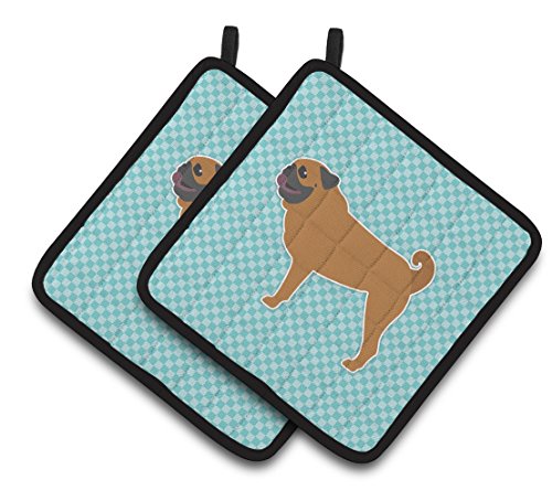 Caroline's Treasures Pug Checkerboard Blue Pair of Pot Holders BB3747PTHD, 7.5HX7.5W, Multicolor
