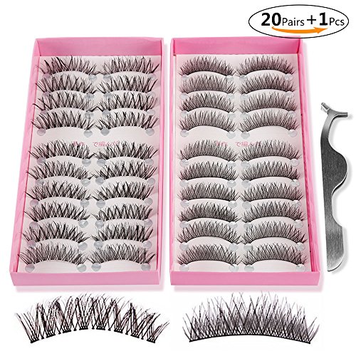 Teenitor 20 Pair 2 Desgin Crisscross False Eyelashes Lashes With A False Eyelashes Extension Applicator Tool, Handmade Cruelty Natural Looking