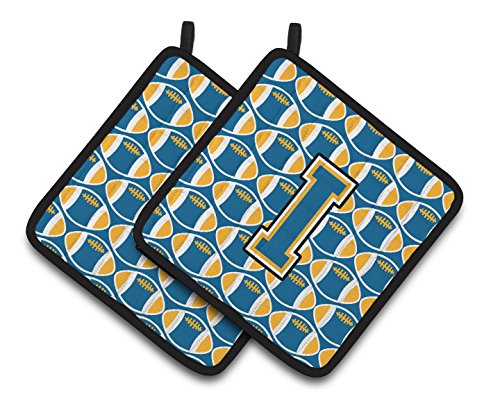 Caroline's Treasures Letter I Football Blue & Gold Pair of Pot Holders CJ1077-IPTHD, 7.5HX7.5W, Multicolor