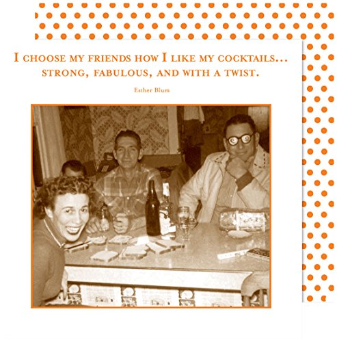 - Humorous pairing of retro photograph and quote or message on front, colorful polka dot pattern on back; great for a cocktail party, wine tasting, or girls' night