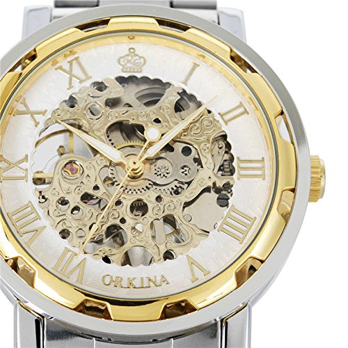 원본상품명: GuTe出品 スケルトン スティ?ムパンク 男女 可愛らしい スタイリッシュ ステンレスバンド 優雅 カジュアル アンティ?ク風 ビンテ?ジ ゴ?ルドにホワイト 手?き腕時計