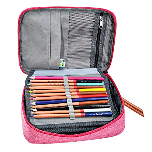 Art Zipper Pencil Case Pouch Handbag For 72 Colored Pencils By OLIKE (PINK)