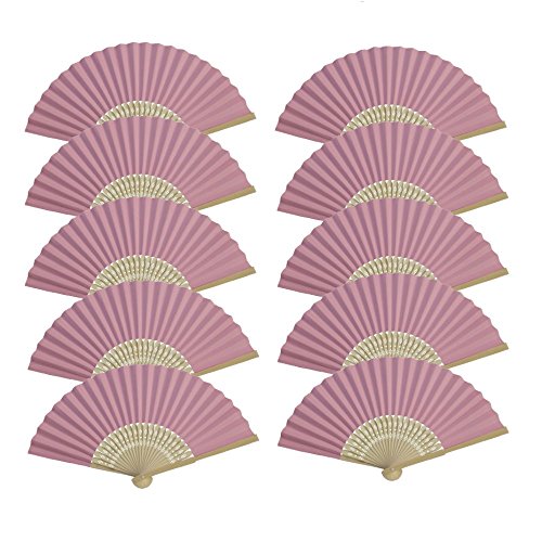 Folding Fan White Blank Paper Handheld Folded Fan Bridal Dancing Props Church Wedding Gift Party Favors Home Office DIY Decor(10pcs) (Pink)