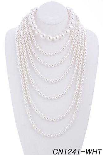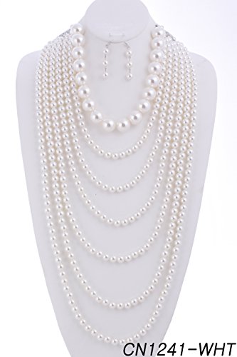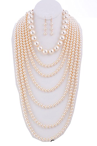 WOMEN'S FASHIONABLE MULTI SIZED PEARL STRAND NECKLACE AND EARRINGS SET