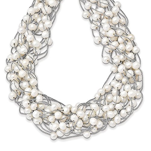 Solid 925 Sterling Silver RH 5.5-6.5mm White FWC Simulated Pearl Multi-strand Necklace