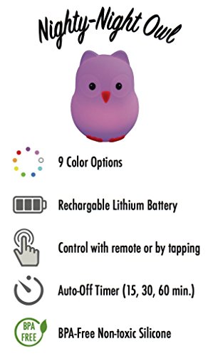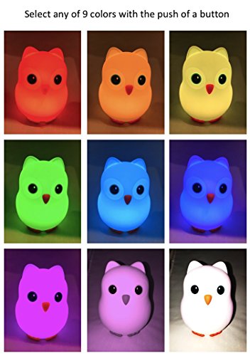 Nighty Night Owl: Night Light for Nursery & Child's Bedroom -- color-changing, energy-efficient LEDs (9 colors!), BPA-free silicone, lithium-ion battery,...