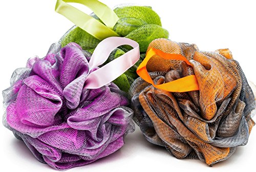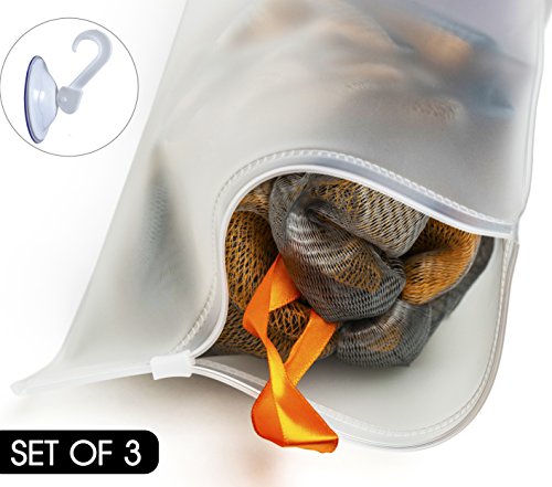 Luxury Mesh Shower Loofah. Travel Loofah Puff Gift Set. Shower Pouf with 3 Strong Loofah Suction Cup Hooks and Waterproof Case Bag. Top Rated...