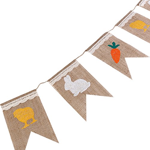 Tinksky Burlap Banner birthday banners Rabbit Carrot Print Natural Burlap Bunting Banner for Easter Christmas Baby Shower Party Favors Photo Props