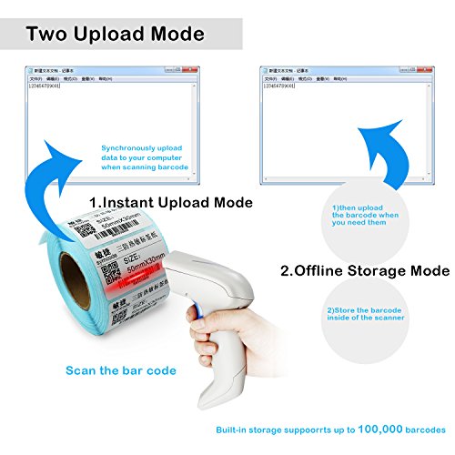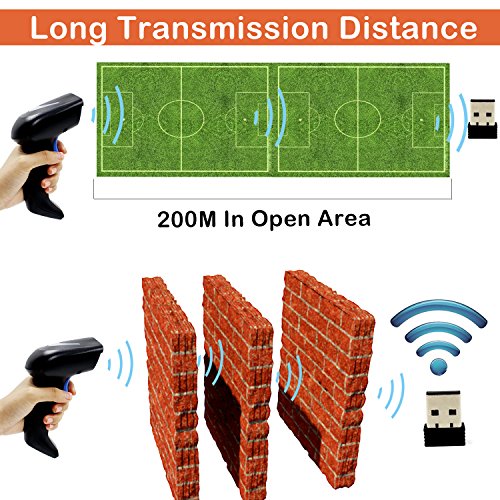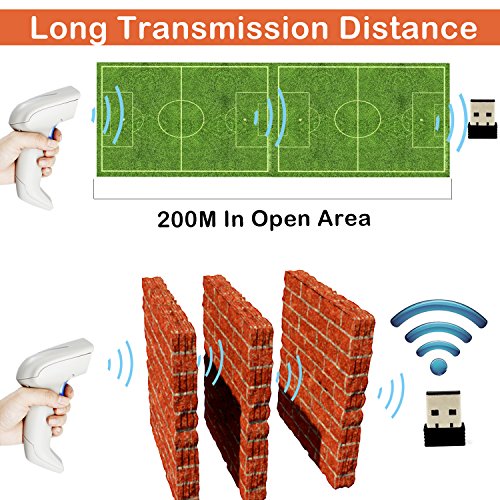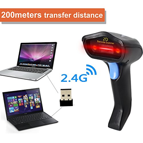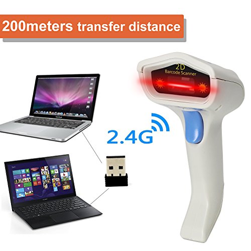 2D Wireless Barcode Scanner,Symcode 2.4G CCD Bar Code Reader with Long Transfer Distance for Mobile Payment