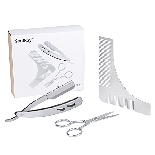 Beard Trimming Tool, SoulBay Mustache Shaping Symmetric Kit for Men, Including Styling Comb Template+ Professional Manual Shaver(Blades Not Included)...