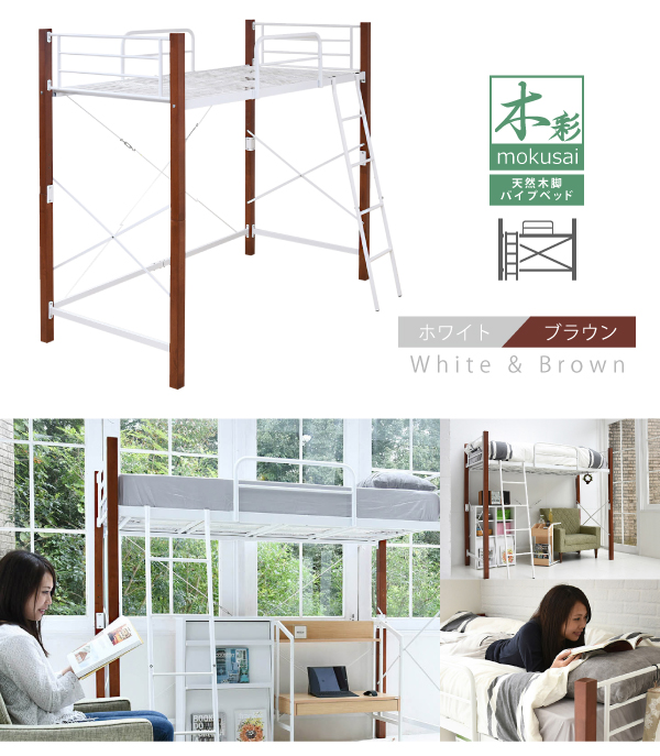 ●天然木の支柱がおしゃれなパイプベッド