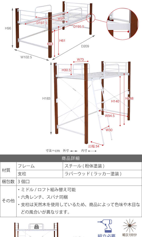 ●2段パイプベッド 2段ベッド ロフト 子供 耐震 大人 大人用 シングルベッド ロフト 二段 スチールベッド スチールベット ハイタイプベッド