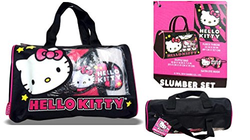 -. Title : Hello Kitty slumber set 3PC duffle bag + fleece throw + eye mask pink zebra