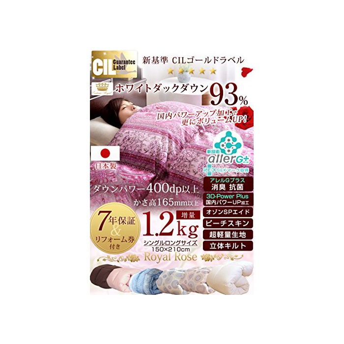 CIL골드 라벨,GF마크,국내3D파워 업 가공,그 것《루》G플러스(소취 항균 가공)고, 오존(제균방취방 곰팡이방 다《니》효과)가공,피치 스킨 가공,화이트 덕 다운1.2kg,다운 프르프 가공,입체 퀼트 가공,룹8인지(든가) 소부착,7년 보증,일본제