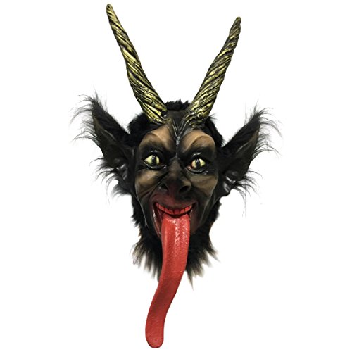 -. Brand : Off the Wall Toys -. Color : Black, Gold -. Department : unisex-adult -. Feature : Into every Christmas Holiday a little Krampus must fall. / Your other decorations can celebrate the season, this one will threaten the naughty. / his Krampus is made of features gold painted horns and a tongue that is sure to frighten. / Perfect for the dark side of the Christmas. / Made from eco-friendly latex. -. PackageQuantity : 1 -. ProductGroup : Apparel -. ProductTypeName : ADULT_COSTUME -. Size : One Size -. Title : Holiday Christmas Krampus Mask By Off the Wall Toys -. UPC : 681321135413
