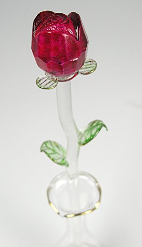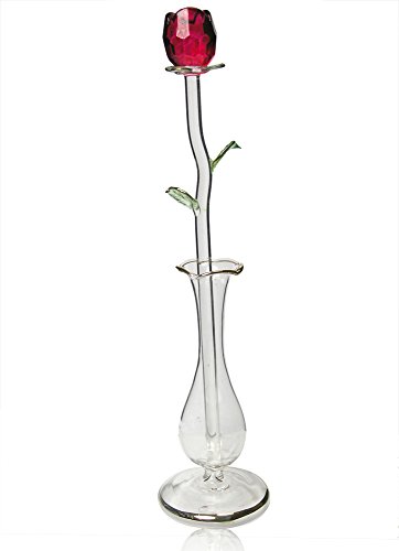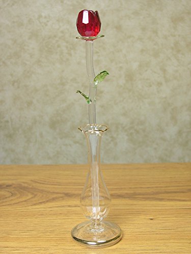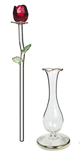 Product Description This elegantly faceted crystal red rose with glass vase is a wonderful gift for any occasion. Individually gift boxed. 8" high. The crystal bud is highlighted with several green leaves and sits in a fluted glass vase. Rose in vase measures 8"H and boxed. 0