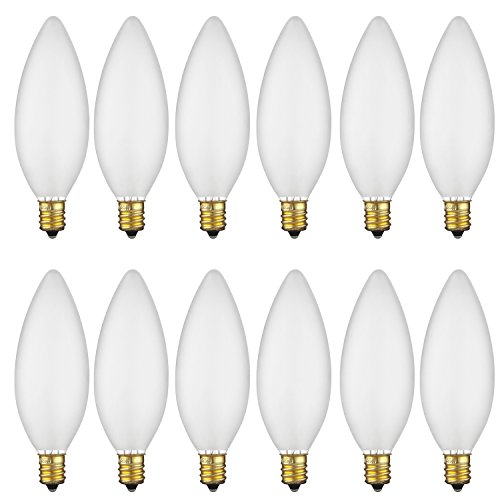 Sunlite 15CTF/25/12PK 15W Incandescent Petite Chandelier Light Bulb, Candelabra (E12) Base, Frosted Bulb (12 Pack)