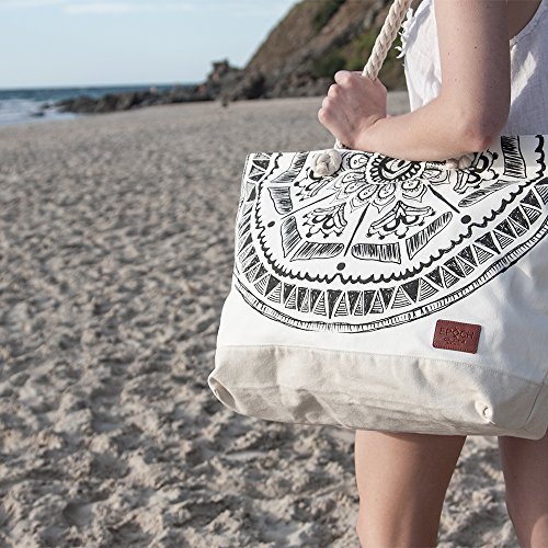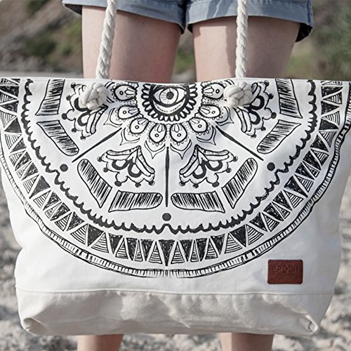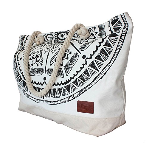 -. Brand : Epoch Collective -. Color : Black & White -. Department : womens -. EAN : 9350974000027 -. Feature : Beautiful Hand Crafted Designs, Exclusive to Epoch Collective to match our Luxury Round Beach Towel Range. / High Quality 20oz Cotton Canvas material - a beach tote seriously made to last. / Extra Large Bag Size with large internal zip pocket and separate phone/sunglass pockets. Room to fit EVERYTHING! / Luxuriously finished with thick nautical rope handle, natural leather labels and zip tags and heavy duty brass zippers. -. Model : CBB-MYNE-003 -. ProductGroup : Apparel -. ProductTypeName : LAGE -. Size : X-Large -. Title : MAYAN EYE Canvas Beach Tote Bag with Nautical Rope Handle