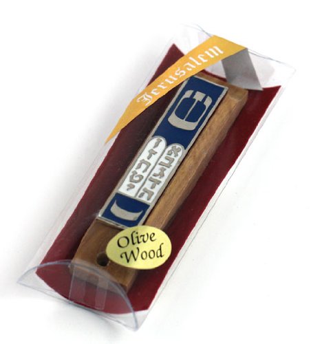 Olive Wood Mezuzah Case with Shema Yisrael Scroll (The Scroll Is Not Kosher)