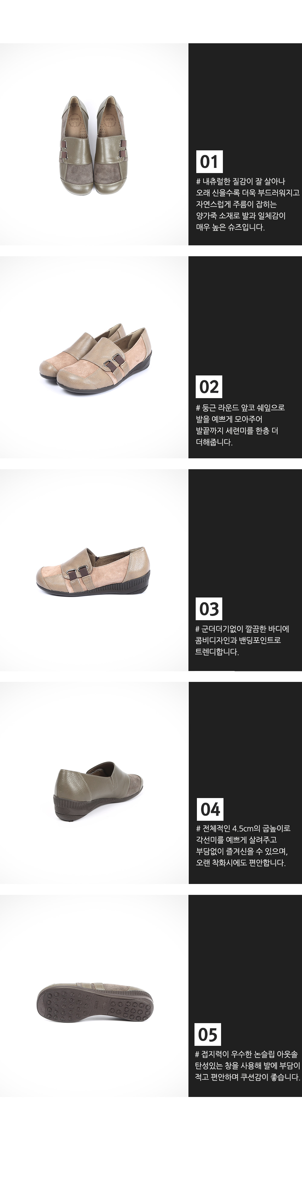 GGG2147. 헤르민[MD COMMENT]캐쥬얼한 무드로 즐겨신기 좋은 단화 소개합니다.부드러운 리얼양가죽 소재로 제작되어고급스러운 퀄리티가 멋스러운 요녀석은콤비디자인과 밴딩디테일로 트렌디한 슈즈랍니다 =D4.5cm의 굽높이로 자연스러운 키높이 효과와 동시에푹신한 쿠션패드가있어 장시간 착화시에도 편안하구요-팬츠나, 스커트 어디에나 매칭이 좋은 데일리아이템이니고민말고 데려가셔서 다양한 스타일코디에 스타일링해보세요 ♥